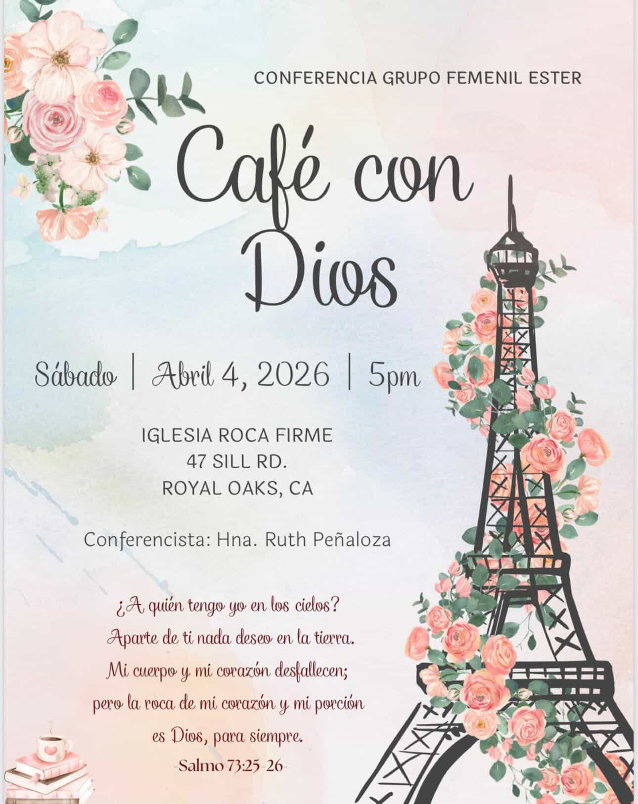 Paz De Cristo, Les hacemos una cordial invitación a nuestra conferencia femenil este 4 de Abril.... Donde recibirás una palabra de animo, de consuelo y esperanza. En nuestro caminar va a ver momentos donde sintamos que nuestra carne y nuestro corazón desfallece, ya sea por enfermedad, fatiga o desgaste emocional de la vida. Mas el […]
